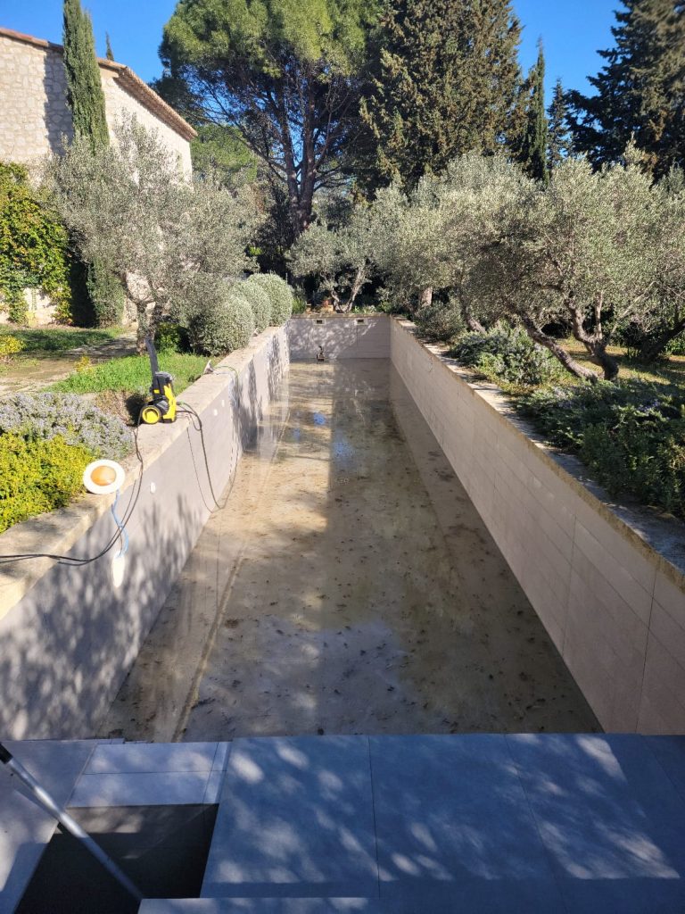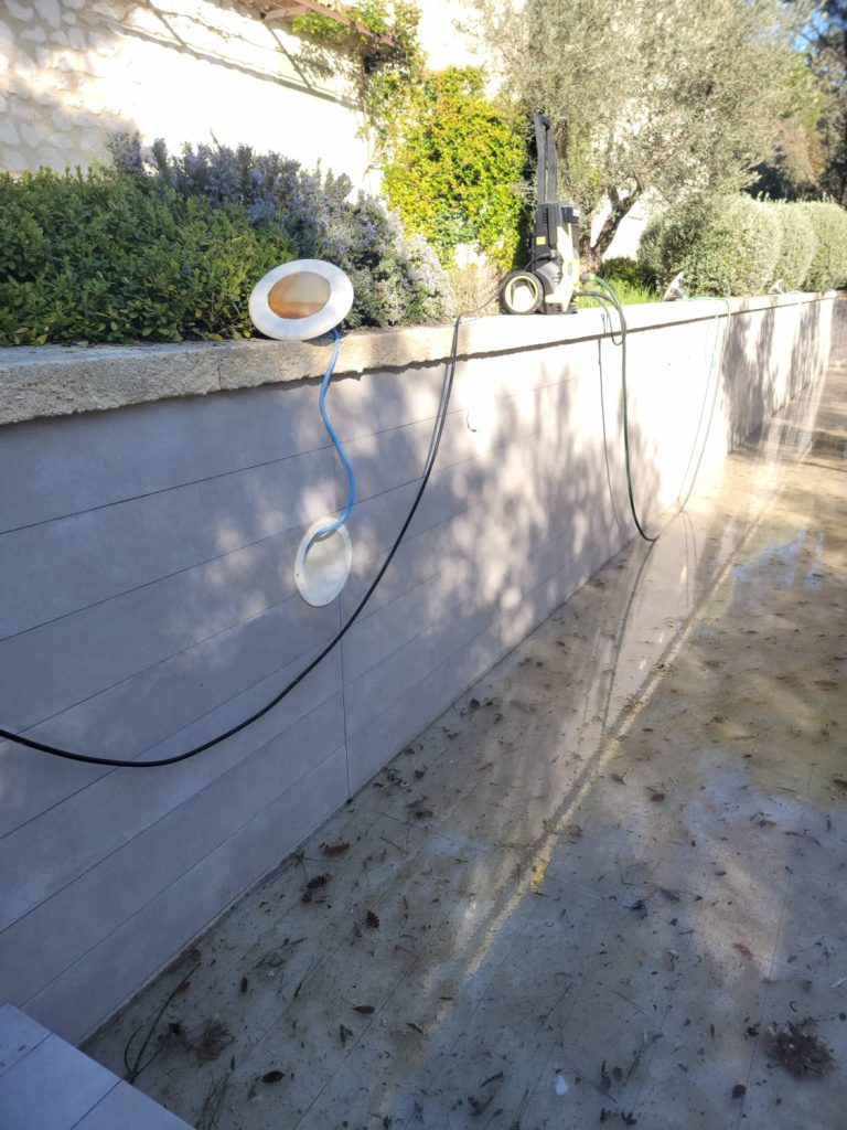 En option il est possible de faire un nettoyage haute-pression où le bassin sera vidé pour retirer le calcaire accumulé sur votre piscine et la remise en eau de votre piscinepour avoir ensuite une piscine toujours prête à la baignade.